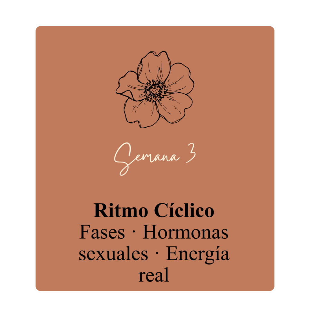 • y alimentación funcional femenina (nutrientes que sostienen glándulas y ciclos) - Cada semana ponemos el foco en el eje hormonal que estamos observando, sin eliminar grupos de alimentos